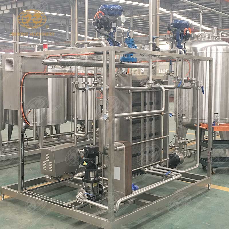 主要由板式換熱器、平衡桶、輸送系統、物料管路系統、蒸汽管路系統、熱水系統、物料自動回流系統、溫度自動控制、框架及電器控制系統等系統組成。